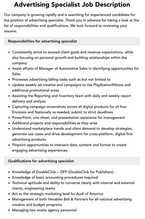 Paid Advertising Specialist Job: Full Description