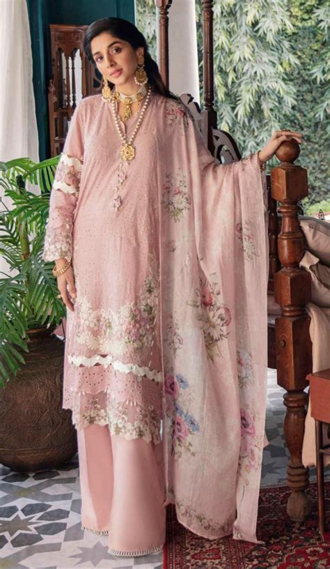 Let’s start with the basics: what exactly is Chikankari? Chikankari is an intricate and delicate form of embroidery that originated in Lucknow, India . The word ‘Chikan’ is derived from the Persian word ‘Chikeen,’ meaning embroidered fabric. Over time, this art form has seamlessly blended into Pakistani fashion, particularly in suit designs. The process involves hand-embroidered designs on various fabrics like muslin, silk, cotton, and even chiffon. Predominantly, white cotton thread is used on light pastel shades, though modern adaptations include vibrant colors and different thread materials. The motifs are usually inspired by nature, with floral and paisley patterns being the most common. The beauty of Chikankari lies in its subtlety and the sheer skill required to create these intricate designs. Theari, murri, and phanda are just a few of the stitches used, each adding a unique texture and dimension to the fabric. A true Chikankari piece is a labor of love, often taking weeks to complete, making each suit a unique work of art. Wearing a Chikankari suit is like wearing a piece of history, a testament to the enduring beauty of handcrafted artistry.