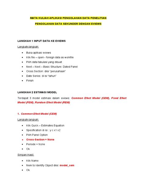 Data panel itu gabungan antara cross-section dan time series . Misalnya, data PDB tiap provinsi di Indonesia dari tahun 2010-2020. Buku Eviews 10 PDF yang komprehensif juga akan membahas analisis data panel. Kalian bakal belajar tentang model Fixed Effects (FE) dan Random Effects (RE), gimana cara milih model yang tepat (misalnya pake Uji Hausman), dan gimana cara interpretasi hasilnya. Analisis panel ini sangat berguna buat ngontrol efek yang tidak teramati tapi konstan dari waktu ke waktu atau dari unit ke unit. Analisis panel memberikan insight yang lebih kaya daripada analisis cross-section atau time series saja. Ini penting banget buat penelitian yang butuh kedalaman analisis. Jadi, kalau data kalian termasuk jenis data panel, jangan sampai skip bagian ini ya, guys!