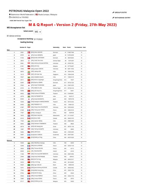 Hey guys, let’s dive into the PETRONAS Malaysia Open 2022 ! This was a seriously exciting badminton event, bringing together some of the best players from around the globe. If you’re a fan of high-octane rallies, incredible skill, and nail-biting finishes, then you were probably glued to your screens just like I was. The Malaysia Open has a rich history, and the 2022 edition was no exception, showcasing top-tier talent across all categories. We saw fierce competition in Men’s Singles, Women’s Singles, Men’s Doubles, Women’s Doubles, and Mixed Doubles, each match a testament to the dedication and passion these athletes pour into the sport. The energy in the arena, even if you were watching from home, was palpable, and it’s events like these that really get the badminton community buzzing. Getting the schedule right is key to following your favorite players and understanding the flow of the tournament. It allows you to plan your viewing, anticipate the big clashes, and soak in all the action without missing a beat. This tournament wasn’t just about wins and losses; it was about the stories that unfolded on the court, the rivalries renewed, and the new stars emerging. The PETRONAS Malaysia Open always delivers, and the 2022 edition was a brilliant showcase of modern badminton at its finest. So, buckle up, and let’s break down what happened and when!