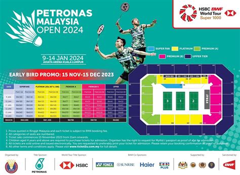 • Tips for Buying: Purchase your tickets as early as possible to secure your preferred seats. Be cautious of unofficial ticket sellers and ensure you buy from authorized vendors. Consider purchasing a multi-day pass to enjoy multiple days of thrilling badminton action. Keep an eye out for any special promotions or discounts. Prepare for potential high demand, especially for the finals, and be ready to purchase your tickets quickly. Make sure to check the venue’s policies regarding bag size and prohibited items. Attending the Petronas Malaysia Open 2024 in person is an incredible way to witness the sport at its best and soak in the electric atmosphere.