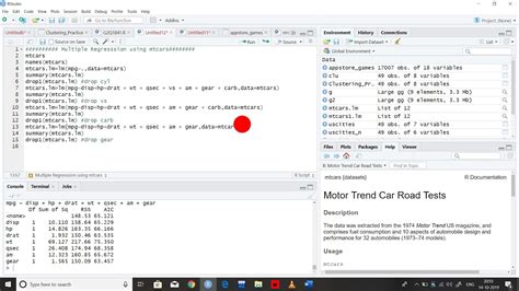 Now, let’s switch gears and explore the mtcars dataset in R. The mtcars dataset is a built-in dataset in R that contains information about various car models, including their miles per gallon (mpg), number of cylinders, horsepower, and other characteristics. This dataset is widely used for teaching data analysis and statistical modeling in R.