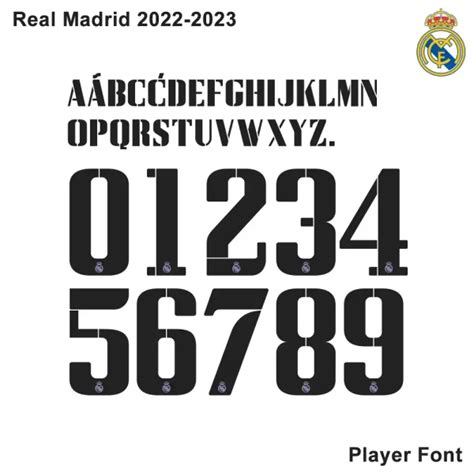 Now, let’s talk about how the actual players’ names and numbers look with the Real Madrid jersey font for the 2022-23 season . Seeing your favorite stars like Benzema, Modrić, or Vinícius Jr. with their names and numbers in this font is where the magic really happens, guys! The font is designed to be versatile, looking sharp with every single player. For legendary strikers like Karim Benzema, his iconic number ‘9’ and name look incredibly powerful and commanding in this bold font. The sharpness of the font complements his decisive presence on the field. For midfield maestros such as Luka Modrić, his number ‘10’ and name exude a sense of class and precision. The clean lines of the font reflect his elegant playmaking and vision. Then you have dynamic wingers like Vinícius Jr., whose number ‘7’ and name appear explosive and full of energy. The font’s modern aesthetic matches his electrifying pace and skill. Even for defenders or goalkeepers, the font maintains its strong and professional appearance. Imagine a rock-solid defender like Rüdiger with his name and number – it just screams reliability and strength. The font’s design ensures that regardless of the player or their position, the name and number are instantly recognizable and contribute to the overall imposing look of the team. The consistent application across all players reinforces the unity and professional image of Real Madrid. It’s not just about individual stars; it’s about the collective. The font serves as a unifying element, making sure every player, from the star striker to the utility player, looks part of the same formidable squad. The way the numbers are proportioned ensures they are easily distinguishable, even in the heat of a fast-paced match. For instance, ‘1’ and ‘7’ have distinct shapes, and differentiating between ‘3’ and ‘8’ or ‘0’ and ‘6’ is never an issue due to the font’s clear design. The names are equally legible, with a good balance between letter height and width, and consistent spacing. This uniformity is a hallmark of top-tier football clubs and their official merchandise. Seeing these names and numbers on the pitch is the ultimate endorsement of the font’s effectiveness and style. It’s the final touch that connects the fans directly to the players they cheer for, making each jersey a personal piece of the club’s ongoing story.