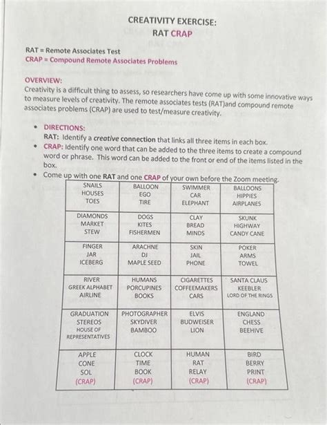 Experiment with different strategies for solving RAT problems. Some people find it helpful to brainstorm a list of possible connecting words, while others prefer to focus on one word at a time and try to identify its associations with the other two words. Find the strategies that work best for you and use them to your advantage.