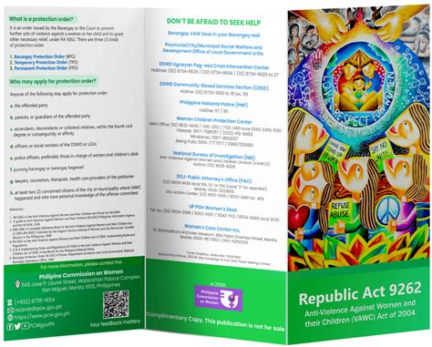 Many local government units (LGUs) have women’s desks that offer support and assistance to women experiencing violence. These desks provide counseling, legal advice, and referrals to other services. Women’s desks are staffed by trained professionals who understand the complexities of domestic violence and are dedicated to helping victims navigate the legal and social support systems. They offer a safe and confidential space for women to share their experiences and receive guidance. Women’s desks also play a vital role in raising awareness about domestic violence and advocating for policies and programs that protect women’s rights.