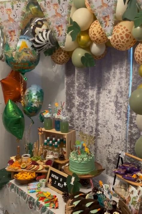 • Backdrops : Create stunning backdrops using large printed images of jungles, savannas, or even the entrance to a zoo. These backdrops instantly transport your guests to another world. Alternatively, use fabric drapes in various shades of green and brown to create a textured, natural look.