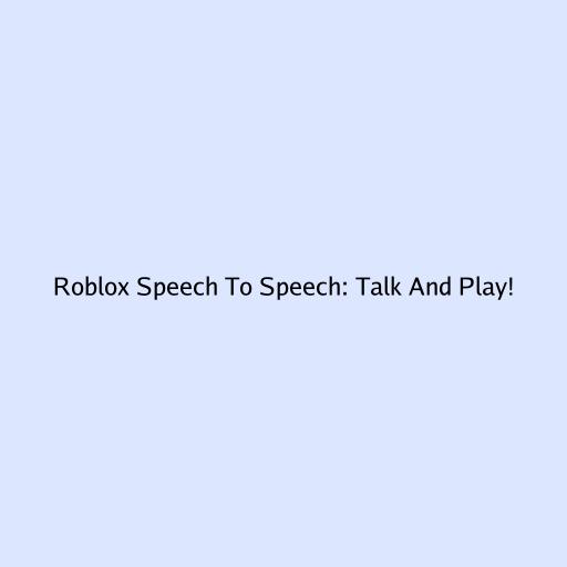 Roblox Speech To Speech: Talk And Play!