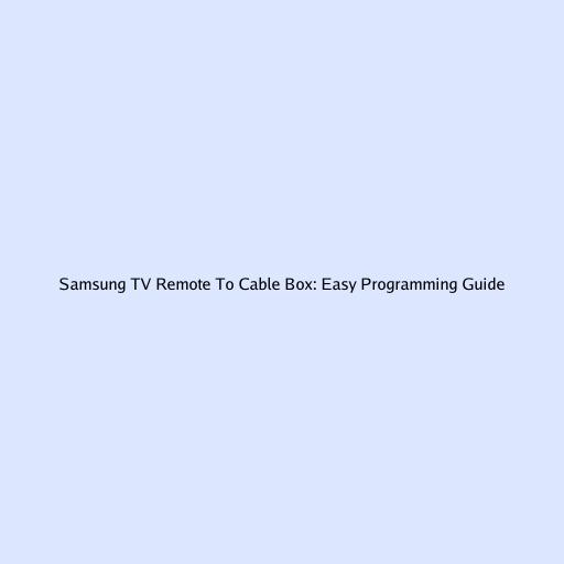 Samsung TV Remote to Cable Box: Easy Programming Guide