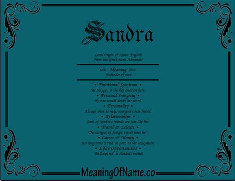 When we talk about the meaning of Sandra , we’re essentially tapping into that original Greek essence: “defender of mankind.” This meaning continues to resonate today. Parents who choose the name Sandra for their daughters often connect with this idea of strength, protection, and inherent goodness. It’s a name that suggests a person who is capable, resilient, and perhaps has a nurturing side. While the literal meaning is rooted in ancient Greek, the perception of the name Sandra in modern times can also be influenced by cultural context and personal associations. For some, it might evoke a sense of sophistication and elegance, perhaps due to its historical use in high society or its melodic sound. For others, it might bring to mind a friendly, approachable individual, thanks to its widespread popularity. The beauty of a name like Sandra is its ability to hold multiple interpretations while staying true to its core meaning. It’s not just about the etymology; it’s about the person who carries the name and the qualities they embody. The name suggests someone who can stand up for themselves and others, someone with a strong moral compass, and someone who is generally reliable and trustworthy. It’s a name that feels both classic and current, a perfect blend of tradition and modernity. So, when you meet a Sandra, remember that her name carries with it centuries of history and a powerful, positive message of protection and strength.