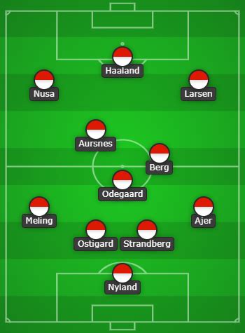 Turning our attention to the Norwegian side, their predicted lineup is equally fascinating, especially given the star power they possess. With players like Erling Haaland and Martin Ødegaard, Norway has the potential to be a formidable force. However, the challenge lies in creating a balanced team that can maximize the strengths of these individual talents while remaining defensively solid. The coach, Ståle Solbakken, will likely opt for an attacking formation, possibly a 4-3-3 or a 4-2-3-1, to unleash the full potential of his attacking players.
