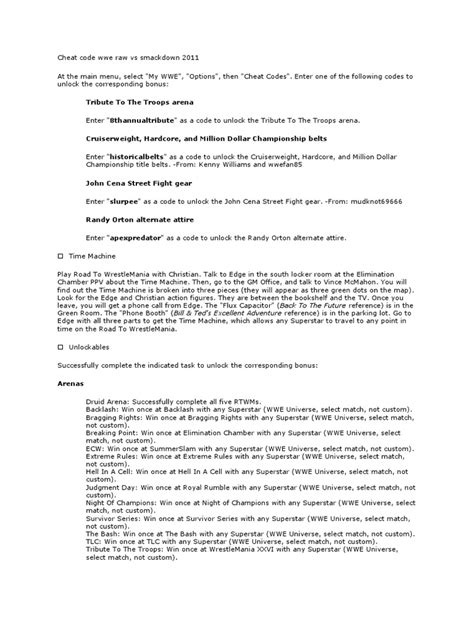 Alright, let’s kick things off with one of the most sought-after categories: unlocking WWE Superstars using cheat codes . Who doesn’t love having the entire roster at their fingertips, ready to dish out some serious pain? In Smackdown vs Raw 2011, there are several ways to bring those legendary performers into your game without the usual grind. One of the most popular cheats involves unlocking a specific set of wrestlers that are usually locked behind gameplay progression. By entering a particular code during the game’s menu, you can instantly gain access to a bunch of fan favorites who might otherwise take hours to unlock. Imagine stepping into the ring with icons you only dreamed of playing as, or finally getting that dream match you’ve been planning. This isn’t just about having more characters; it’s about reliving classic moments and creating your own epic showdowns. Furthermore, some codes might even unlock alternate attires for existing wrestlers, giving you more customization options and adding a fresh visual flair to your matches. We’re talking about those iconic looks that defined eras and cemented these superstars in wrestling history. Getting these codes can be a game-changer, especially if you’re looking to complete your collection or just want to experiment with different match-ups. We’ll detail the exact button combinations and menu locations for these unlocks, so pay close attention. This is your ticket to expanding your WWE universe and experiencing the full breadth of talent available in the game. Don’t forget to save your progress after entering codes, just in case!