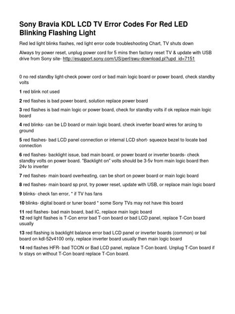 First things first, that blinking red light isn’t just randomly flashing to mess with your chill time. It’s actually a coded message from your TV! The number of blinks, and the pattern of those blinks, can indicate a specific issue. You see, Sony TVs, like many modern electronics, have built-in self-diagnostic systems. When something goes wrong, the TV uses the flashing red light to give you a clue about what’s happening. Think of it like Morse code, but for electronics. Understanding this code is the first step in getting your TV back to its glory days. The number of blinks usually corresponds to an error code that can help you pinpoint the issue. Now, finding the exact error code meanings for your specific Sony TV model can be a little tricky because it depends on the TV model, but we’ll cover that later. However, knowing that the blinks are a signal is important. It means there’s a problem, and you can solve it with a little detective work.