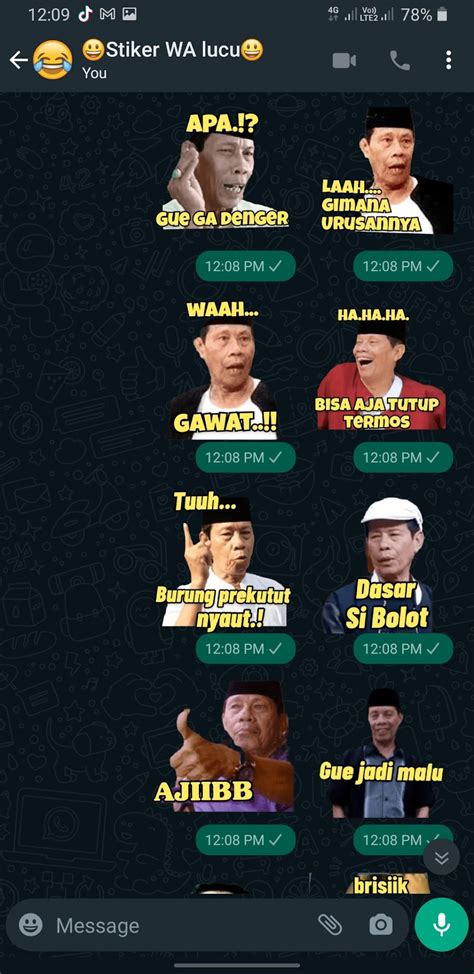 Kalau ngomongin soal stiker WhatsApp kocak , wah ini sih surganya buat para pencari hiburan. Siapa sih yang nggak suka dikirim stiker yang bikin ngakak guling-guling? Stiker-stiker ini biasanya diambil dari adegan film, acara TV, meme yang lagi viral, atau bahkan ekspresi orang-orang di kehidupan sehari-hari yang super random tapi bikin ngakak. Misalnya, ada stiker Pak Tani lagi joget, stiker reaksi drama Korea yang lebay, atau stiker orang lagi makan dengan lahap. Dijamin deh, sekali lihat langsung auto ngakak! Stiker kocak ini cocok banget buat dipake di segala situasi. Lagi bete sama kerjaan? Kirim stiker orang terkapar! Lagi ngerayain sesuatu? Kirim stiker pesta pora! Pokoknya, stiker kocak ini bisa jadi mood booster instan buat kalian dan teman-teman kalian. Kalian bisa nemuin stiker-stiker kayak gini di banyak tempat. Selain dari galeri stiker WhatsApp, banyak juga aplikasi stiker yang khusus nyediain stiker-stiker lucu dan absurd. Coba deh kalian cari stiker yang berhubungan sama kejadian sehari-hari, atau stiker yang punya dialog kocak. Dijamin obrolan kalian bakal jadi lebih hidup dan penuh tawa. Jangan lupa juga buat sharing stiker kocak yang kalian punya sama temen-temen kalian, biar makin banyak yang ketawa bareng. Ingat, stiker WhatsApp kocak itu bukan cuma gambar, tapi bisa jadi cara ampuh buat mencairkan suasana dan bikin momen chat kalian jadi lebih memorable. Jadi, yuk sebarkan tawa lewat stiker!