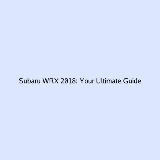 Subaru WRX 2018: Your Ultimate Guide