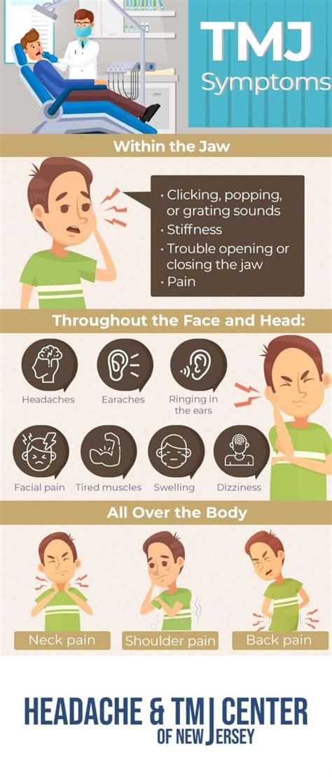 First and foremost, headache pain is the main symptom. But it’s not just any headache. TMJ headaches are often described as a dull, aching pain that feels like a tight band around the head. Sometimes, the pain can be more intense, causing throbbing or sharp sensations. The headache may be centered around the temples, but it can also radiate to other areas of the head, such as the forehead, back of the head, or even the neck. Jaw pain is another key symptom. This can manifest as pain in the jaw joint itself, or soreness in the muscles around the jaw. You might notice that your jaw feels stiff or tender, especially when you chew, talk, or yawn. Sometimes, you might even experience a clicking or popping sound in your jaw when you move it.