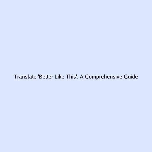 Translate 'Better Like This': A Comprehensive Guide