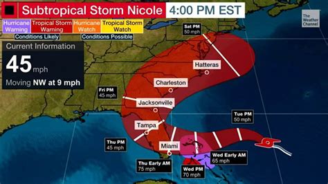 Several factors played a key role in the formation and early intensification of Tropical Storm Nicole . One of the most important was the warm ocean waters . Tropical storms and hurricanes are essentially heat engines, drawing their energy from the warm waters of the ocean. The higher the sea surface temperature, the more fuel there is to feed the storm. Another factor was the presence of low wind shear . Wind shear is the change in wind speed and direction with height. Strong wind shear can tear a storm apart, preventing it from organizing and strengthening. Fortunately for Nicole, the wind shear in the area was relatively weak, allowing the storm to develop more freely. Finally, the atmospheric conditions were also favorable. High levels of moisture in the atmosphere and a stable environment contributed to the storm’s intensification. All these elements combined to create a perfect breeding ground for Nicole to grow and become a threat to the areas along its predicted path. The interplay of these factors illustrates how complex and dynamic these storms can be, and how forecasters use this information to predict their behavior.