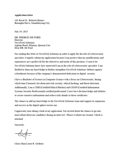 • A professional closing: Thank the reader for their time and consideration, and provide your contact information.