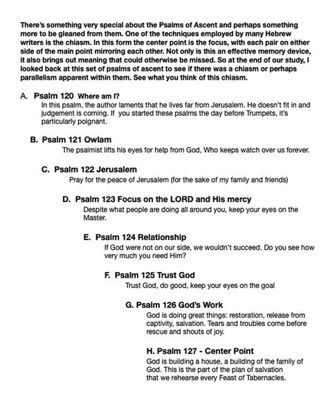 So, why bother learning about chiasm ? Well, understanding chiasm offers several significant benefits. It enhances comprehension . By recognizing the structure, you gain a deeper understanding of the Psalm’s message. It improves interpretation . The chiastic structure can shed light on the author’s intended meaning. It increases appreciation . You’ll develop a greater appreciation for the artistic and theological depth of the Psalms. It aids memory . The symmetrical structure makes the text easier to remember and meditate on. It connects with ancient context . Understanding chiasm helps you connect with the way ancient writers communicated and emphasized their messages. The benefits of understanding chiasm extend beyond mere academic interest; it transforms the way we engage with and appreciate the Psalms. By recognizing the chiastic structure, we gain a deeper insight into the author’s intended meaning, allowing us to grasp the central message of the Psalm with greater clarity. This understanding enhances our comprehension of the text and enriches our interpretation, leading to a more profound appreciation of the Psalm’s artistic and theological depth. Moreover, the symmetrical structure of chiasm makes the text more memorable, allowing us to internalize the message and meditate on its significance. Understanding chiasm also connects us with the ancient context in which the Psalms were written, providing valuable insights into the way ancient writers communicated and emphasized their messages. This connection allows us to appreciate the Psalms not just as beautiful poems but as carefully crafted pieces of literature designed to convey profound theological truths. In essence, understanding chiasm unlocks a deeper level of understanding and appreciation for the Psalms, enriching our spiritual lives and deepening our connection with the Word of God. So, take the time to learn about this fascinating literary device, and you’ll be amazed at how it transforms your reading of the Psalms.