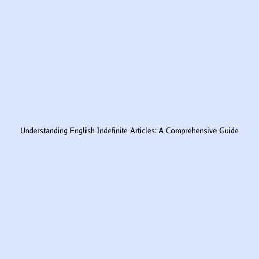 Understanding English Indefinite Articles: A Comprehensive Guide