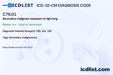 Hey medical enthusiasts, let’s dive into the world of medical coding, specifically focusing on the ICD-10 code C78.01 . This code is super important because it deals with secondary malignant neoplasm of the lung . Basically, it means cancer that started somewhere else in the body and has spread to the lungs. Understanding this code and what it represents is crucial for accurate diagnosis, treatment, and billing in healthcare. So, let’s break it down, shall we?