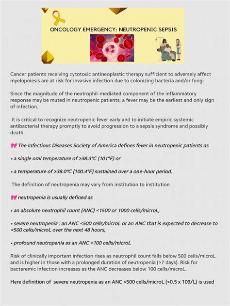 Now that we’ve talked about who is at risk , let’s quickly touch upon why recognizing the signs is so darn important, guys. Neutropenic sepsis can progress incredibly fast, so spotting the symptoms early is absolutely critical for a positive outcome. The hallmark sign is often a fever , typically defined as a temperature of 100.4°F (38°C) or higher. But here’s the kicker: someone with severe neutropenia might not even mount a significant fever because their body lacks enough neutrophils to trigger that inflammatory response effectively. So, while fever is a huge red flag, its absence doesn’t mean everything is okay. Other signs of infection can be quite subtle but are super important to pay attention to. Think about chills, sweating, feeling generally unwell or experiencing fatigue that seems out of proportion to what you’d expect. You might also notice pain or tenderness in a specific area, redness or swelling which could indicate a localized infection. Sore throat, cough, shortness of breath, diarrhea, or pain during urination are also key indicators that something isn’t right. And honestly, any new onset of confusion or altered mental state in someone who is at risk should be treated as an emergency. Because neutropenic sepsis is essentially the body’s inability to fight off an infection, it can lead to a rapid drop in blood pressure, organ dysfunction, and shock. This is why medical professionals often stress the importance of patients reporting any new symptoms immediately, especially if they are undergoing treatments known to cause neutropenia. Don’t wait, don’t try to tough it out – seeking prompt medical evaluation is paramount. Your doctor will likely check your neutrophil count and may start broad-spectrum antibiotics immediately while waiting for test results, as every hour counts in treating this dangerous condition. Remember, being aware of who is at risk and what symptoms to look out for is the first line of defense in managing and overcoming neutropenic sepsis.