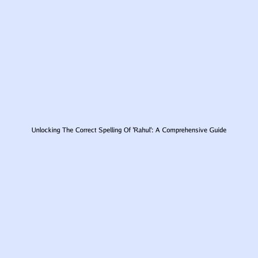 Unlocking the Correct Spelling of ‘Rahul’: A Comprehensive Guide