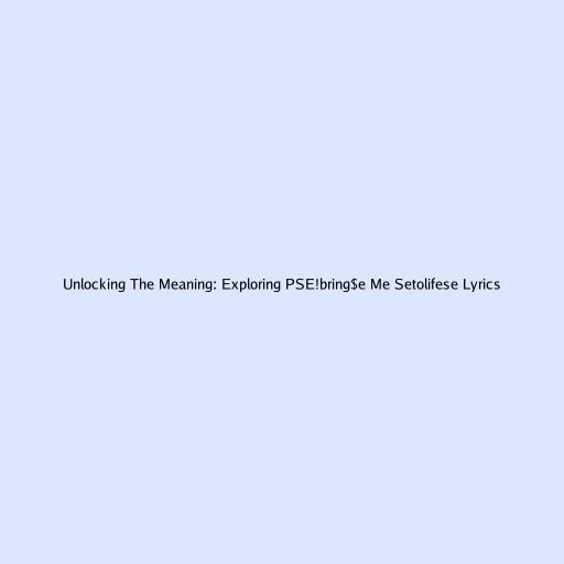 Unveiling the Enigma: PSE!bring$e Me Setolifese Lyrics Deep Dive
