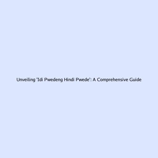 Unveiling ‘Idi Pwedeng Hindi Pwede’: A Comprehensive Guide
