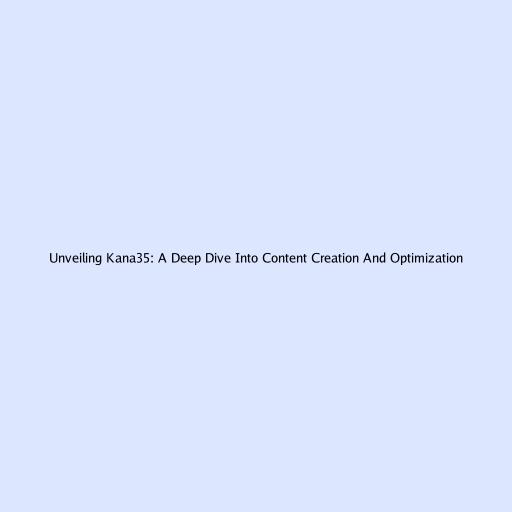 Unveiling Kana35: A Deep Dive into Content Creation and Optimization