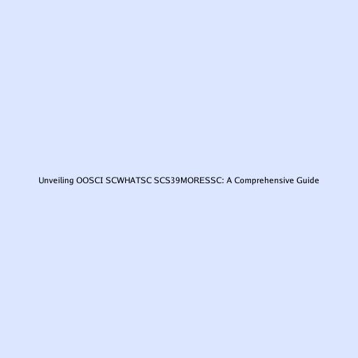 Unveiling OOSCI SCWHATSC SCS39MORESSC: A Comprehensive Guide