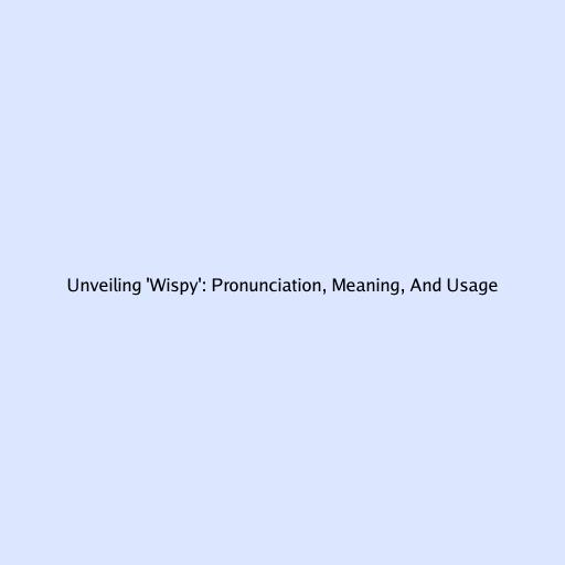 Unveiling 'Wispy': Pronunciation, Meaning, And Usage