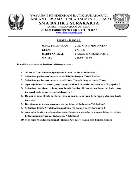 Guys, kali ini kita bakal ngebahas tuntas tentang SMA Batik Surakarta , salah satu sekolah menengah atas yang punya reputasi keren di kota Solo. Buat kalian yang lagi nyari info sekolah atau sekadar penasaran sama kegiatan-kegiatan di SMA Batik 1 Surakarta, pas banget nih nemu artikel ini. Kita bakal kupas tuntas mulai dari profil sekolah, prestasi-prestasi membanggakan, sampai berbagai kegiatan seru yang diadain di sana. Dijamin, setelah baca ini, kalian bakal makin ngeh sama keunggulan SMA Batik 1 Surakarta dan kenapa sekolah ini jadi idaman banyak siswa.