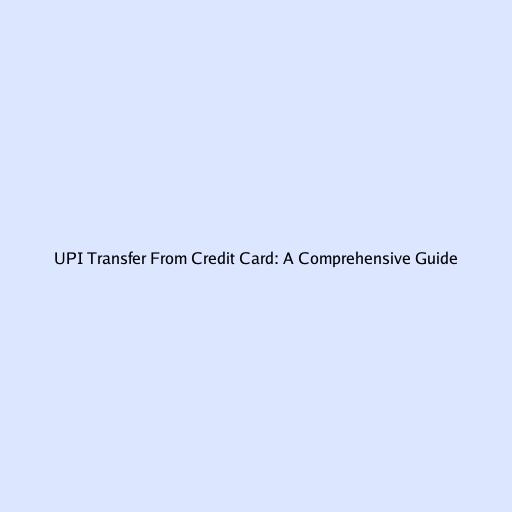 UPI Transfer From Credit Card: A Comprehensive Guide