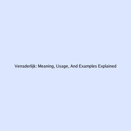 Verraderlijk: Meaning, Usage, And Examples Explained