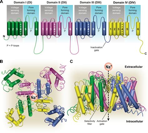 Alright, let’s break down the structure. Think of a voltage-gated sodium channel as a complex protein machine. It’s made up of a large alpha subunit and one or two smaller beta subunits. The alpha subunit is the star of the show because it forms the actual pore through which sodium ions flow. This subunit has four homologous domains (I-IV), each containing six transmembrane segments (S1-S6). The S4 segment is particularly special; it acts as the voltage sensor. It’s positively charged, so it’s sensitive to changes in the electrical potential across the cell membrane. When the membrane potential changes, the S4 segment moves, causing the channel to open or close. The loop between segments S5 and S6 forms the pore region, which is the narrowest part of the channel and determines its selectivity for sodium ions. The beta subunits, on the other hand, modulate the channel’s activity and help with its localization to the cell membrane.