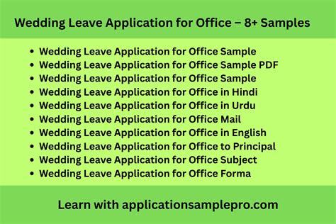 Alright, let’s get down to the nitty-gritty of what needs to be in that wedding leave application . You want to make sure you cover all your bases so your boss says “yes” without a second thought. First and foremost, be crystal clear about the dates. State the exact start date and end date of your leave. No vague “around the wedding” stuff, please! Specify the number of days you’ll be off. Next, clearly state the reason for your leave: your upcoming marriage. You don’t need to go into excessive detail, but a simple and direct statement like “to attend my wedding and subsequent honeymoon” is perfect. It’s also a good idea to mention if you’re requesting paid or unpaid leave, depending on your company’s policy. If you’re entitled to paid marriage leave, mention that you’re requesting to utilize it. If not, clarify that you’re requesting unpaid leave for the duration. Before you submit, it’s crucial to check your company’s leave policy. Some companies have specific forms for marriage leave, while others might just require a formal letter. Knowing this will save you a lot of hassle. Also, consider including a point of contact for urgent matters if absolutely necessary, although try to disconnect as much as possible! Finally, always maintain a professional and courteous tone. Thank your employer for their consideration. A well-crafted application shows you’re organized and considerate, which are always appreciated in the workplace. Remember, the goal is to get your leave approved smoothly, allowing you to focus on the joy of your wedding day without work-related stress.