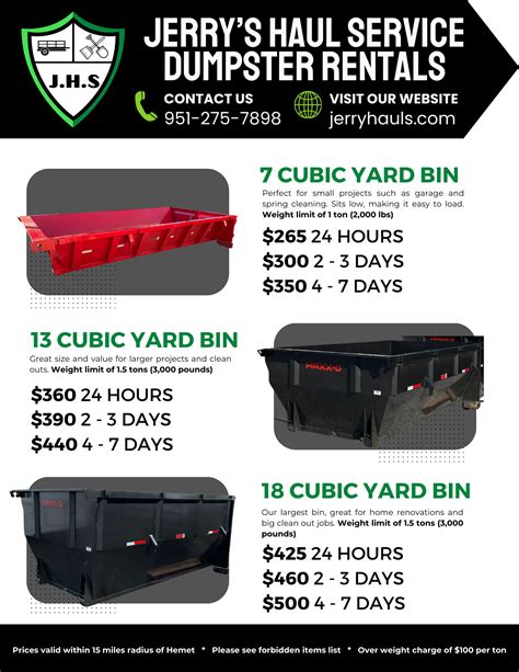 Ask about all the fees! This is super important. Make sure you understand the rental period, any potential landfill fees, fuel surcharges, and crucially, the overage charges if you exceed the weight limit or the fill line. Most companies have a weight limit included in the price, and going over that can get expensive quickly. Also, clarify what is not allowed in the dumpster. Hazardous materials, certain chemicals, electronics, or tires often have special disposal rules and extra fees.